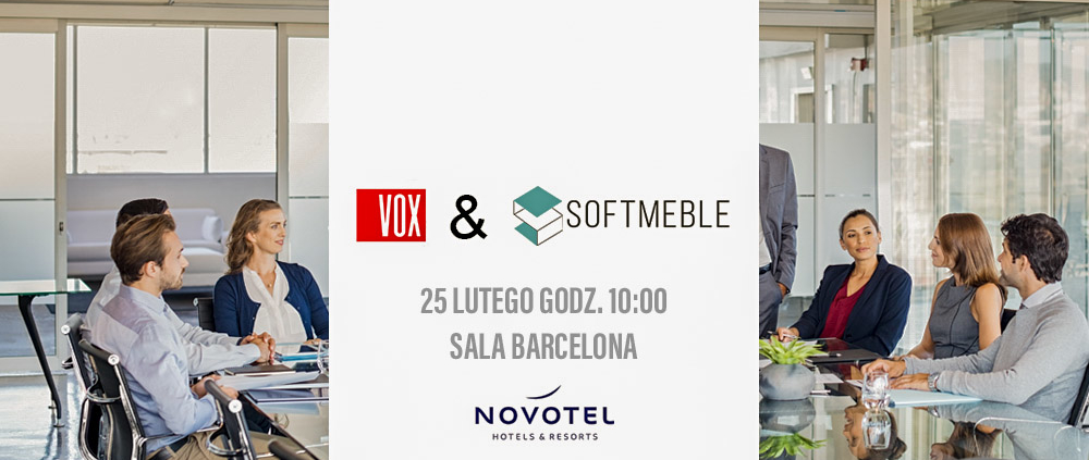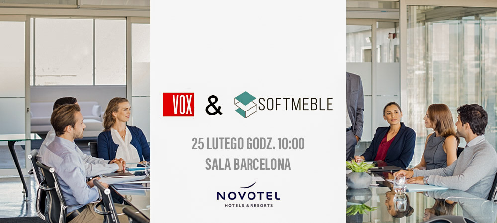 25 lutego o godz.10:00 producent Mebli VOX zaprasza wszystkich swoich Partnerów na spotkanie w hotelu Novotel w Poznaniu – sala Barcelona, z zespołem SoftMeble.